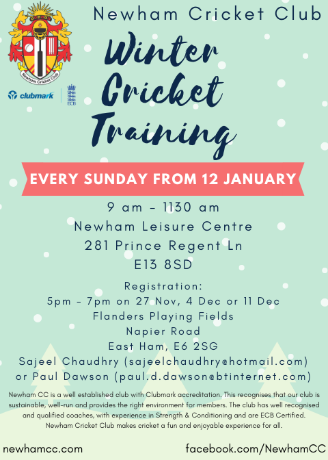 Winter nets and training is underway every Sunday at Newham Leisure Centre.